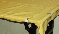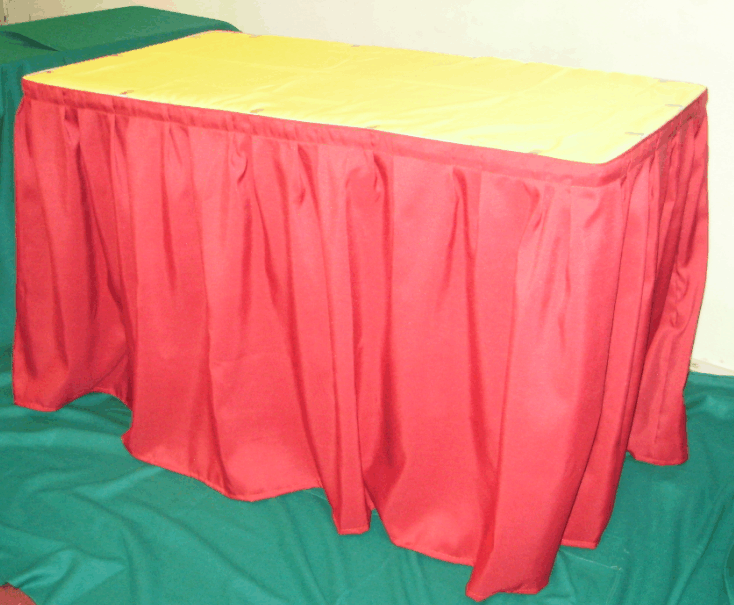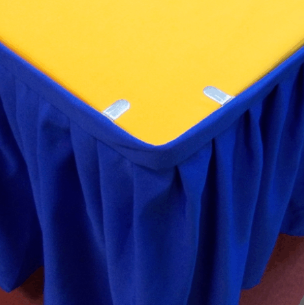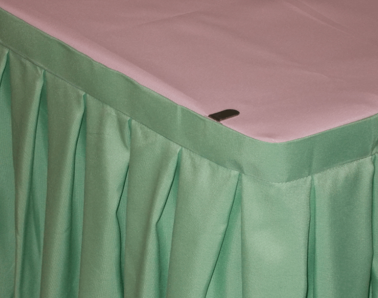 Table skirting with box pleat design and full Velcro straps.