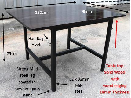 Solid Wood table top  Metal leg coated in black epoxy