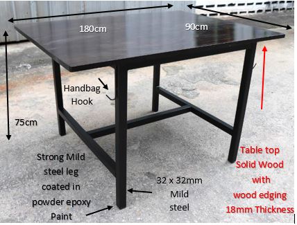 Solid Wood table top  Metal leg coated in black epoxy