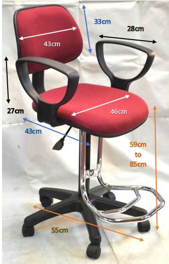 Minimum seat height 59cm, Maximum seat height 85cm