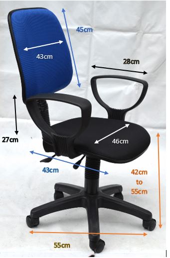 Back rest size 43W x 45H cm, Seat size 46W x 43D cm