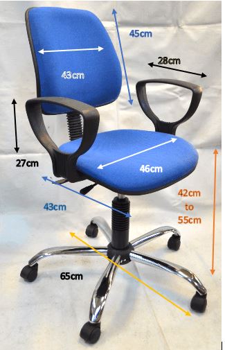 Back rest size 43W x 45H cm, Seat size 46W x 43D cm