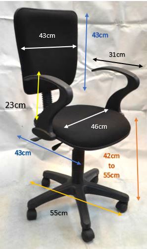 Back rest size 43W x 45H cm, Seat size 46W x 43D cm