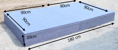size 90W x 180L x 20H cm, 3'W x 6'L x 8"H