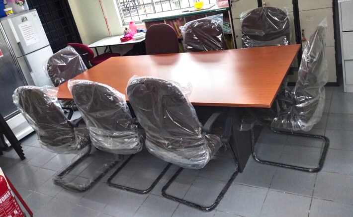 Meeting table in cherry color with 8 pcs visitor chair model 170A
