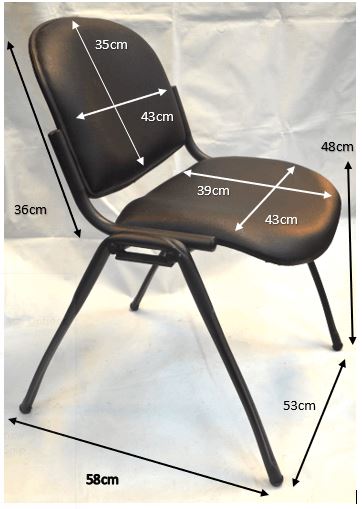 Strong Mild steel leg coated in black epoxy finish, Stackable