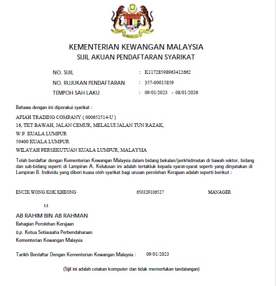Afiah Marketing Sdn Bhd Reg
