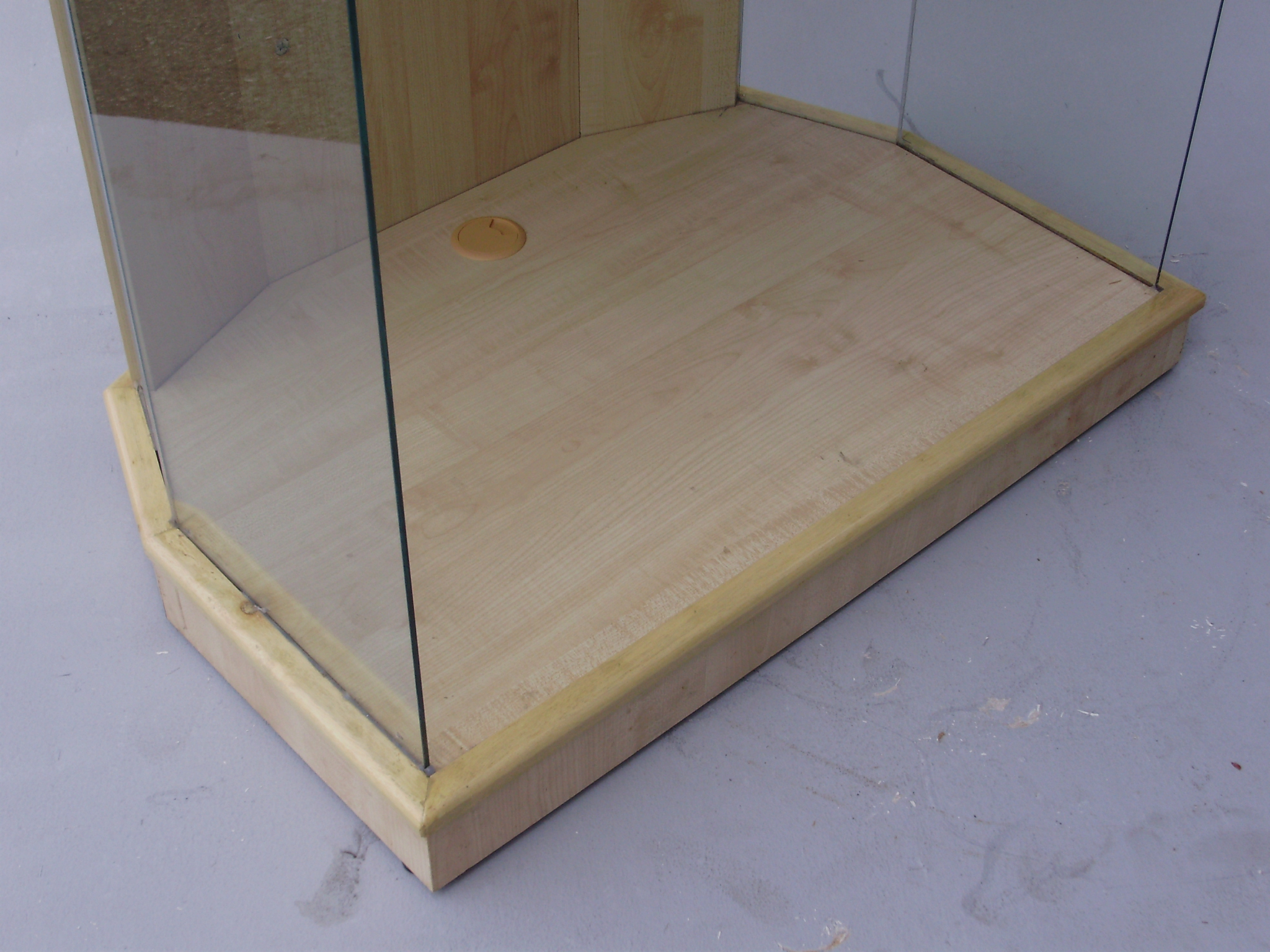 Laminated Wooden Top.and Base. Side with glass. Hole for cord management. overall 89w x 68d x 112h(cm).Available in beech/ Cherry color