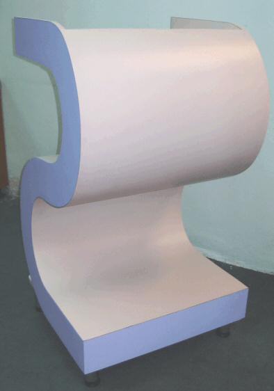 Laminated Wooden Top.and Base. S shape. Hole for cord management. Overall 60w x 60 x 107h.(cm).Available in Beech, Maple, Cherry or Walnut colors