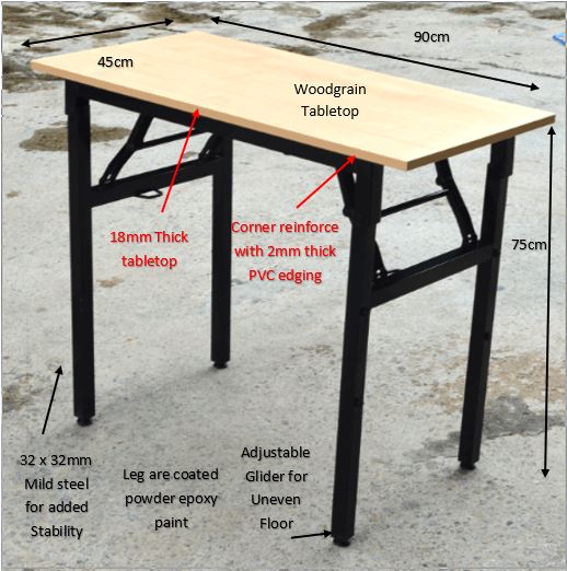 Foldable Metal Leg    Picture shown with Walnut Table top